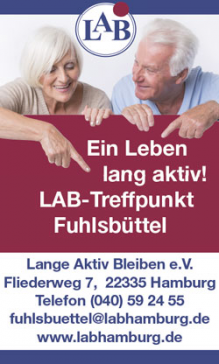kleinanzeigen bekanntschaften agiler herr wünscht sich eine (noch etwas) sportliche dame als partnerin (65+) für natur + kultur, z.b. gemeinsame unternehmungen, ausstellungen, kleine wanderun- gen (rad?) etc., (bitte name + tel. deutlich auf ab, um rückruf zu ermöglichen), tel.: 040/18 09 15 55 junggebl. witwer, 71/176/nr, schlank, naturverbunden, viel- seitig interessiert, sucht sie, nr, warmherzig, treu, natürlich, ca. 66, gerne witwe, für eine gemeinsame zukunft, west, chiffre 25717 junggebliebene löwin, 77/160/ nr, schlank und fit, möchte mit ehrl., netten herrn hamburgs schönheiten erleben. chiffre 25617 negativ: impotent, hartz iv, posi- tiv: lieb, treu, gel. koch, frei, 2 ge- sunde hände zum streicheln, lieb halten u.s.w., nr, bin ein häusli- cher typ, 62 j./180/75 kg., geb. in bayern, chiffre 25517 nette, symp. sie, 67 j. junggeblie- ben, auch im herzen, sucht einen ebensolchen partner mit humor für gemeinsamkeiten, gern auch jünger. freue mich auf anrufe. tel.: 0172/903 82 16 mit einem netten, zuverlässigen und fitten partner an meiner sei- te möchte ich, weil./nr, fit und schlank, 76 +, in zukunft die freie zeit gemeinsam erleben, reisen etc., chiffre 25017 junggebl. partner, 75+ gesucht, für alles schöne, was das leben bietet, witwe, 75+, fit, schlank u. nr, raum volksd./umgebung, chiffre 25117 schlanke sie, 61/165/nr, sucht netten mann für harmonische be- ziehung, wohne hh-nord, chiffre 25417 30 kleinanzeigen kleinanzeigen-coupon gewerbliche kleinanzeigen � 5,– pro zeile (bitte in bar beilegen). einsenden an: sema – senioren magazin hamburg gmbh, georg-clasen-weg 28, 22415 hh absender _____________________ _____________________ _____________________ _____________________ _____________________ telefon _____________________ unterschrift _____________________ die anzeige erscheint in der märz-ausgabe. einsendeschluss: 17.02.2017 frau im herbst des lebens (69), nett aussehend, sucht achtsamen freund mit großem herzen und zärtl. händen, um mit ihm liebe und leben zu teilen u. kultur u. „elphi“ zu genießen, bmb, chif- fre 25217 sie, mitte 70/169/nr, mit guter laune, sucht mann, 70-79/nr, mit herz, hirn und humor. wer traut sich, mich kennenzulernen? nur mut! chiffre 25317 welches mäuschen, weibl., ist mutig und ruft mich an? ich, 72/177/72/nr, sportl., mobil, rei- sefr., interessiert an kunst + kul- tur, möchte nicht mehr alleine sein und das schöne leben mit dir ge- meinsam genießen. laß dich ver- wöhnen. nun, ran an den speck! tel.: 04154/61 99 (ab östl. v. hh) charmante sie (schlank/anf. 60/170) sucht großen mann mit herz, hirn und humor, für freundschaft und vielleicht mehr, e-mail: claire.2016@web.de nette sie, 74/160, humorvoll, sucht zuverl., ehrl. partner/freund/nr, der vielleicht die zukunft mit mir gemeinsam genießen will, chiffre 24917 alleinsein reicht jetzt! wo ist der partner, der mit mir, w/59/173, die noch vielen schönen dinge des le- bens genießen möchte? chiffre 24517 das leben genießen! netter typ, 69/175/nr/schlank, mag liebevol- le zweisamkeit, reden, lachen, rei- sen, pkw-ausflüge, lange spazier- gänge, sie auch? kuli suchen und schreiben! chiffre 24417 frau, 59/160, vielseitig interes- siert, sucht einen sympath., zu- verl. partner, gerne berufstätiger nichtraucher mit herz und humor, chiffre 24317 dir fehlen auch zärtlichkeiten, sanfte küsse und streichelnde hände? er/67, möchte mit einer wirklich herzlichen, fröhlichen, romantischen molligen noch viele schöne jahre erleben. bitte keine handynummer. chiffre 24617 sympathische, natürliche sie (62/172/schl.) sucht junggeblie- benen, frdl. mann für austausch, streifzüge, unternehmungen u. gerne auch eine gemeinsame zu- kunft, chiffre 24217 sos! raum hh + umgebung! er, 73, in seniorenheim, noch fit, sucht immer noch die ehrliche, treue frau/lebenspartnerin für dauer. gerne auch deutschsprachi- ge ausländerin, chiffre 24117 junggebliebene sie, verw., sucht ihn bis anf. 70 mit herz u. humor für eine freundschaftl. beziehung, bei sympathie könnte sich mehr ergeben? ich bin für alles offen, tel.: 040/830 20 64 miteinander ist besser als allein, ich, w., 62, suche freund (nr) bis ca. 70 für gemeinsame unterneh- mungen wie kino, theater, zoobe- suche u.s.w., nur seriöse zuschrif- ten, trau dich, chiffre 24017 junggebliebener er (72/177/nr), schlank, fit, gut situiert (nach op impotent), reisefreudig, sucht part- nerin für ein zärtliches und leben- diges miteinander. chiffre 23917 sie, 65/nr, wünscht humorv., sportl., intell. ihn kennenzulernen, für aufbau einer freundschaft, chiffre 23817 sos, m/70/173/65, sucht ehrli- che frau für den rest des lebens. möchte nicht mehr einsam sein. bin treu, hilfsbereit und mache dich glücklich. gebe geborgenheit. mel- de dich! tel.: 0151/23 12 59 68 innen und außen jung geblie- bene witwe, 75/168/blond/nr, vielseitig interessiert, mobil, sucht keinen versorger, sondern einen ehrlichen, zuverlässigen, humor- vollen, mobilen mann ab 70/178/ nr, flott und fit, zum leben, lie- ben, lachen. ich freue mich. nette zuschriften an e-mail: elblady@ gmx.de oder chiffre 23717 getrennt wohnen und leben, aber doch ein paar sein, d.h. reisen, theater u.v.a.m. zu unternehmen wünscht sich eine wirklich jungge- bliebene witwe, 80/174/nr, liebt alle tiere, vor allem hunde. wenn du meinst, der richtige zu sein, rufe mich bitte an (sollte ich nicht zu erreichen sein, bitte ich darum, den namen und die telefonnum- mer deutlich zu sprechen, ich rufe dann sofort zurück) unter tel.: 0152/34 13 85 99 (ab) m, 65, interessen: kultur, natur, kochen, reisen, sucht f, alter +/-, aber bitte ohne omatypisches verhalten. bin nach op beim ge- hen eingeschränkt, aber mit auto mobil und bereit, was zu erleben, bild? chiffre 23617 62 j., attraktive sie sucht ihn bis 65 j., schlank, gepflegt, für alles schöne, tel.: 0179/948 98 76, hamburg-west w., 50+, berufstätig, schlank, sucht kultivierten optimisten, der aktiv und vielseitig interessier