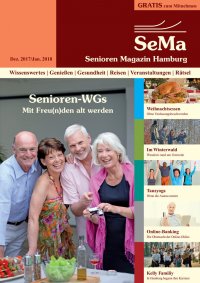 31 Flotte Frau, 62/160, vorzeigbar und fröhlich, finanziell unab- hängig, sucht Mann für Freizeit und gemütliche Fernsehabende, ich freue mich auf Dich! Chiffre 47317 Hallo Hannelore! Deine Zu- schrift auf meine Anzeige Chiff- re-Nr. 41217 war leider ohne Tele- fonangabe/Adresse! Bin auch 74 geworden! Tschüß Edmund aus Hamburg, Chiffre 47217 Überzeugte Singlefrau, 73/77/ 172, spätblond, bewegungs- und diskussionsfreudig, manchmal ganz leise, gibt es für mich den Ihn? Tel.: 0160/ passenden 99 67 13 23 Hey, bist Du eine nette, sympa- thische, schlanke, hübsche Frau, +/- 60 Jahre, die auch allein ist und sich eine neue Liebe wünscht? Ich, m/70/171/72, wohne in Pin- neberg, Chiffre 47117 Sie, 66/165/65, Blondine, kess und neugrierig, modern, sucht für Zweisamkeit mit Anspruch eben- so junggebl., männl. Pendant, mo- dern u. aufgeschlossen, b.m.B., neugierig warte ich auf Antwort, Chiffre 47017 Junggebliebenes Seniorenehe- paar in HH-Nord sucht für vertrau- ensvolles, zuverlässiges Für- und Miteinander (kein Sex) eine gepfl., freundl., viels. interessierte Frau (ca. 25 bis 40 Jahre, auch versehrt/ amputiert möglich). Zuschrift = 100 % Diskretion, Chiffre 46917 Getrennt leben, d.h. wohnen – aber gem. d. Tagesfreizeit solide, gesund u. auch sinnv. gestalten – hierfür sucht solider u. beschei- dener, lupenreiner Opa „Sie, d. Fassung“, nach d. Haus- u. Gar- tenarbeit. Hoffe, d.f.d. evtl. An- fang einer briefl. Verbindung al- les Erstwesentl. gesagt zu haben. Chiffre 48117 Freizeit Sie, 80-erin, sucht gebildete, viel- seitige Freundin für gegenseitige Anteilnahme, gemütliches Kaf- fee trinken, Ausfahrten (Pkw). Volksdorf und Umgebung wäre schön. Chiffre 49717 Zum Aufbau einer Freundschaft sucht Sie, 75, 2-3 nette Damen ab 68 +, NR, für gemeinsame Frei- zeitgestaltung und Unternehmun- gen, vielleicht auch Kartenspiele, Rummikub oder mit Spielsteinen, Chiffre 49517 Sie, 70+, sucht für Freizeit Freun- de (m/w) für gemeinsame Un- ternehmungen, gern mobil, Tel.: 0157/33 97 76 13 "Schlägertypen" gesucht! Kleiner Tischtennisverein sucht neue Spie- ler, auch Hobbyspieler sind will- kommen, jeden Montag-, Diens- tag- und Freitagabend von 18.30 bis 21 Uhr in der Grellkampschu- le, HH-Langenhorn, Info bei W. Rieck, Tel.: 040/532 39 02 Stuhl-Yoga-Gruppe hat noch Plätze frei. Schnupperstunde am Montag, 08.01.18, 12-13 Uhr. Wo: Stellinger Steindamm 2, Infor- mationen und Anmeldung unter Tel.: 040/540 48 96 Junggebliebene Singles ab 60 treffen sich als "Club 60" jeden Dienstag um 15 Uhr im Restau- rant Bolero, Rothenbaumch. 78, neben U-Hallerstraße. Wir bieten auch Gruppen für Jüngere, Tel.: 040/46 63 74 03 Heiligabendfeier für gut gelaun- te Singles in einem Restaurant (Grindelhof 17) gegen Selbstbetei- ligung (ca. � 20,– p.P. für Essen & Getränk), von privat, Anmeldung bis 16.12.17, Tel.: 040/46 63 74 03 oder 040/57 65 61 Tanzen hält fit! Für Paare ab 50 ist ein Wiedereinstieg im netten Tanzkreis möglich. Wir tanzen u. üben in geselliger Runde jeden Freitag ab 19.30 Uhr im Savoy in Norderstedt. Tel.: 040/522 69 98 Sie, 68 J., NR, sucht für gemein- same Unternehmungen eine nette Frau aus Norderstedt, Langenhorn wäre schön, Tel.: 040/524 03 95 Anna-Maria aus Barmbek (Du hattest Dich auf die Anzeige aktiv am WE gemeldet), leider bekomme ich unter der von mir angegeb. Tel.- Nr. keinen Kontakt. Bitte melde Dich nochmals, Tel.: 040/602 36 56 Frau, 65 Jahre, NR, Kosmopolit, 5-sprachig, sucht unkomplizierte, selbstbewusste Reisefreundin, nicht lesbisch, getrennte Kasse, Lateinamerika, Europa, Asien, Tel.: 0151/24 66 67 47 Rentnerin, 63, aus Norderstedt sucht gute Freundin, NR, für Rei- sen, schöne Unternehmungen, nettes Beisammensein + Ausflü- ge, SMS + Whats App über Tel.: 0157/54 24 05 67, freue mich auf Antwort! Doppelkopfrunde sucht in Bah- renfeld Verstärkung, freitags 2 x im Monat, 16 Uhr, Tel. oder SMS: 0162/706 38 54 Skatrunde sucht Mitspielerin, 2 x im Monat, feste Tage, 14-17 Uhr, Tel. oder SMS: 0162/706 38 54 Frau, 66/168/60, sucht niveauvol- le Menschen (m/w), 60-65 Jahre, für Freizeitgestaltung, Konzerte, Theater, Kino, Reisen. Freue mich auf nette Antworten. Chif- fre 47617 Suche immer noch liebe Freundin/ Freunde, zum Reden, spazieren ge- hen, auch mit kl. Hund. Bin Hobby- Autorin, male mit schw. Tusche, la- che gerne. Freue mich über Anrufe unter Tel.: 0176/21 88 20 75 Wer möchte mit uns die grauen Zellen trainieren? Jeden Montag im AWO-Treff, Niendorf Markt, Tibarg 1b, Gedächtnistraining "Fit im Kopf", Info bei W. Rieck, Tel.: 040/532 39 02 Suche reiselustige Dame! Bin 71 J., weibl., NR, Tel.: 040/553 45 17 „Vorlesen – zuhören und genie- ßen“. Ein Nachmittag zum Ent- spannen findet einmal im Monat, jeden 3. Dienstag von 15.30 bis ca. 18 Uhr in einem netten Café statt. Dieser Nachmittag gestaltet sich sowohl für Zuhörer als auch Muti- ge, die selber gerne etwas vortra- gen möchten. Näheres/Kontakt unter: 0176/54 71 74 52 oder HannadsGedichte@aol.com Immobilien Othmarschen, kleine Dachwoh- nung im Einzelhaus, teilmöbliert, 2 Zi. m. Küche und Badbenutzung, � 520,– inkl., Tel.: 040/89 17 10 Verkauf 10 Teile Weihnachtsartikel neu! Wert � 40,– für � 9,95. Schmuck, Deko, 1 Haus/Keramik, Kerzen- halter/Porzellan, 1 Stumpenk. Gr. 1, 3 gr. Kugeln silber + gold u.s.w., außerdem 3 Bierkrüge à � 5,–, Tel.: 040/630 56 08 Schaukel-Liegestuhl, Kopf- und Fußteil einzeln + manuell verstellbar, breite, gepolsterte Armlehnen, tiefrot/goldfarbig gestreifter Bezugsstoff, � 220,–, Tel.: 040/52 90 13 10 Couchtisch, 60 x 60 cm, 54 cm hoch, Glas auf mattiertem schwarz-gold Eisengestell (von Bornold), NP � 850,–, VB � 200,–, Tel.: 040/53 53 17 39 Lachsmesser � 60,–, Elektro- Grill mit Ständer � 45,–, Tel.: 040/53 53 17 39 Wer sammelt Hutschenreuther Porzellan-Weihn.-Glocken? Biete Jahrgang 1978-2007 gegen Gebot an, Tel.: 040/84 05 95 15 Neuwertiger Scooter (Seniormo- bil) Modell: Nizza NP � 4.800,–, wenig gefah